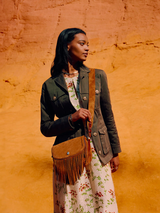 Signature design touches on timeless tan pieces give a nod to western style with a sophisticated twist.