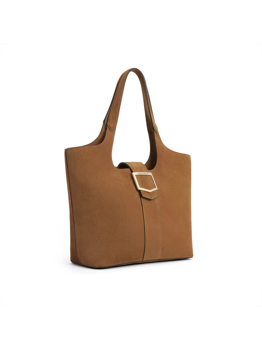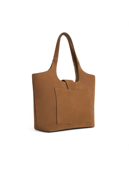 A wardrobe must-have for the new season, this sophisticated Tote joins the Belmont Clutch and Mini Crossbody Bags, giving you a spacious accessory that goes with anything. Buttery soft suede ensures it feels as good as it looks, while the shiny light gold Fairfax and Favor chevron hardware adds polish and refinement.