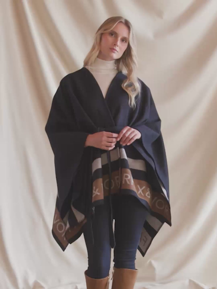 Rachel Cape - Navy Tri-Colour Wool