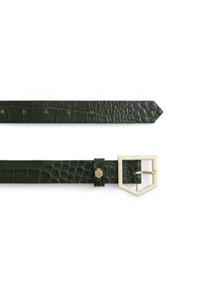 Buckle up this beautiful belt and knock every outfit out of the park. From cinching in a flouncy shirt dress to adding the pin-sharp finishing touch to your favorite denim, there’s nothing this dainty slimline belt can’t handle. Our extra-special Emerald Green Croc Print edition ups the luxe factor for occasions featuring festive fizz- definitely a treat you’ll long to find under the tree this year.