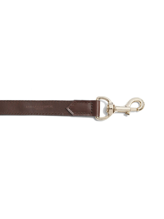 Handcrafted in Portugal from high quality leather, we’ve finished it with shiney light gold branded shield hardware and a sturdy clip, plus a lightly padded handle to ensure walks are enjoyed in comfort.