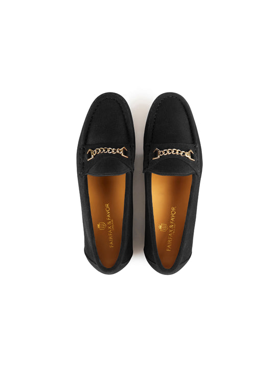 A heritage inspired design, the Apsley Loafer is handcrafted from fine quality suede and finished with a shiny light gold chain trim with chevron detailing. In a choice of classic colours, for wearable style and lasting elegance.