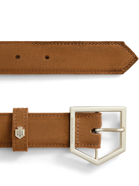 Handcrafted in Portugal, in thick, high quality bombé suede, attention to detail includes shiny light gold hardware and our iconic gold and navy enamel shield logo, so you can relax knowing that this belt will be the perfect finishing touch to any outfit .