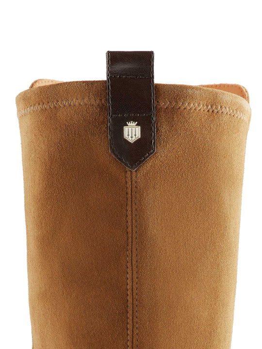 Individually handcrafted in Spain from our premium, sustainably-sourced suede complete with a stretch suede back panel for a smooth, comfortable fit. The shiny light gold shield adds a signature Fairfax & Favor touch, while the memory foam insole, leather and rubber composite sole complete the appeal.