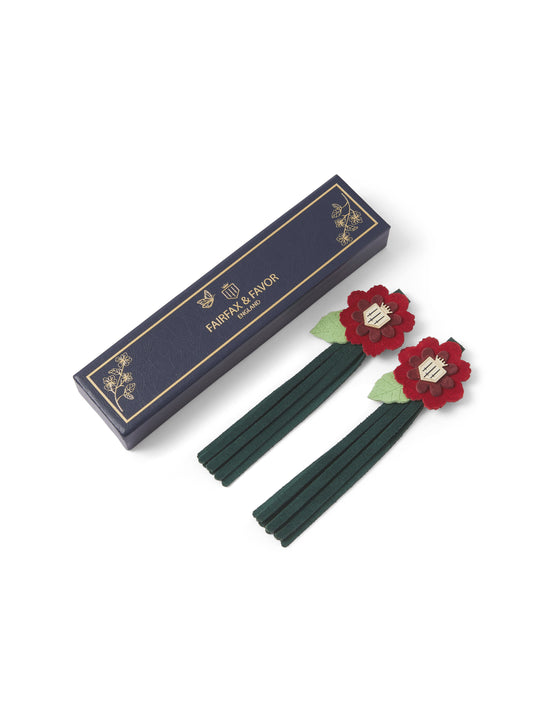 Unfortunately, Flower Tassels - Forest Green & Red Suede has sold out.