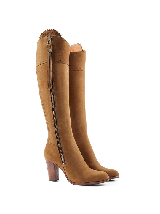 A twist on our signature style, where the Fairfax & Favor story began, Regina is a polished interpretation of a classic with an elegant high heel. A sophisticated knee-high boot, handcrafted individually from premium, sustainably sourced sItailian suedes, is available in a range of timeless shades.