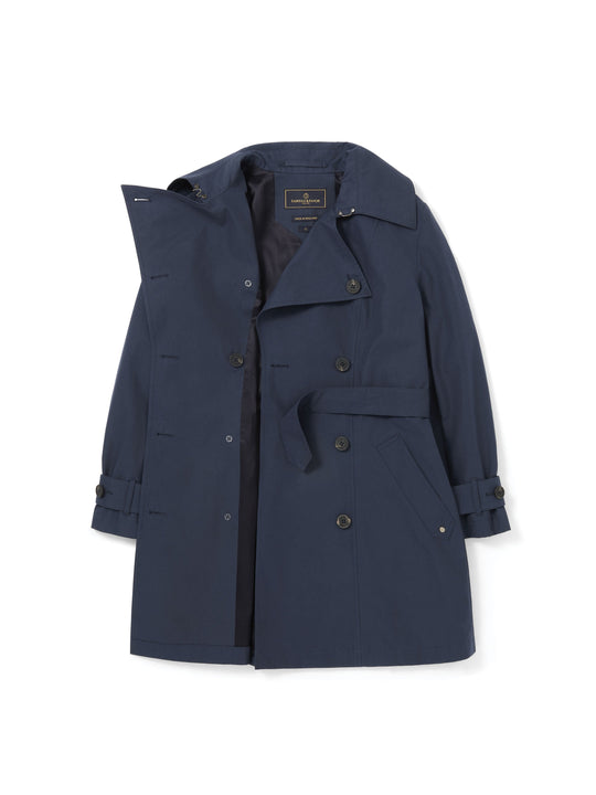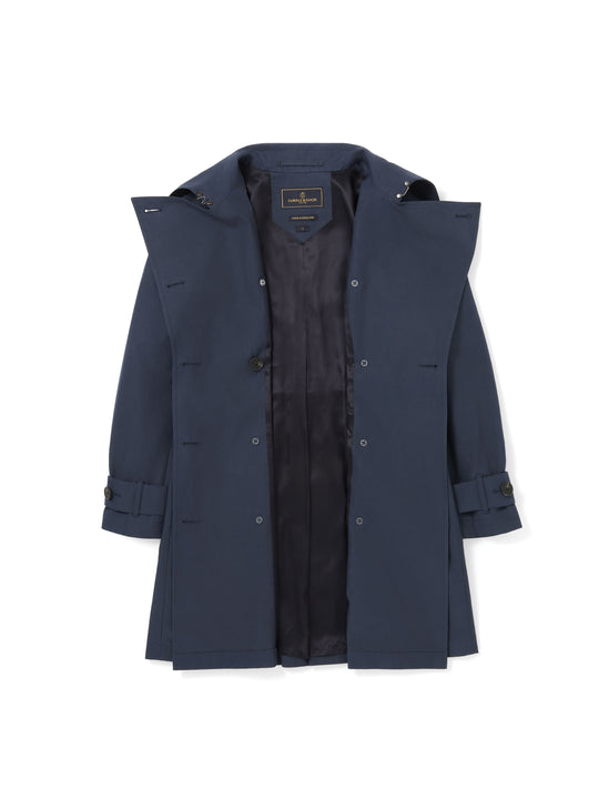 Style up a gray day with the sophisticated Kitty Trench. With its removable epaulettes, chevron pockets and double breasted closure, the Kitty is our answer to the classic trench. This light, unlined coat is perfect for pulling on over a summer ensemble without getting you too warm. Wear it with a crisp white shirt, jeans and loafers on days when the weather isn’t playing ball.