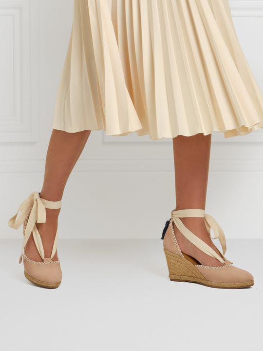 Nothing makes an outfit like a statement wedge. With its flattering wrap-around ribbon, the Portofino has ‘summer romance’ written all over it. Finished with a cute mini tassel, this gorgeous wedge is your holiday wardrobe saviour, taking you from beach bar to wine bar with the sophisticated allure of an elegant lady abroad. Think flowing linen dress, huge straw hat and an Aperol Spritz.