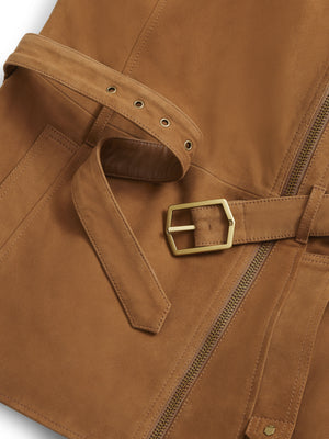 Swing into spring in sophisticated suede. Inspired by our instantly iconic Frances Trench, the Primrose’s allure is all down to the details: leather piping, subtle chevrons, buttoned epaulettes. It’s also incredibly flattering, with elegant feminine tailoring and a beautiful belt to give your waist head-turning definition. A guaranteed confidence-booster, it’s the perfect partner to light knitwear and crisp shirts, smart denim or a cute tweed skirt to elevate your rural vogue ensemble. Just add your favorite Fairfax & Favor boots and bag and you’re all set for spring meets and meet-ups.