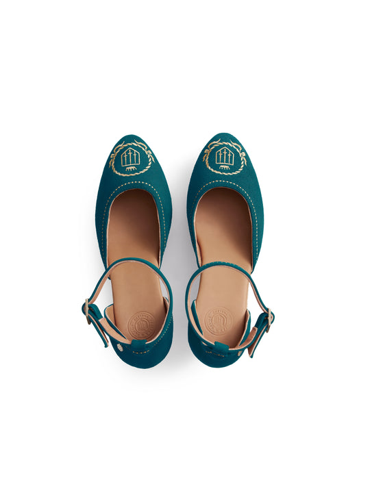 Level up your warm weather line-ups with the Richmond. This wonderful wedge has all the ingredients you need for a summer’s day in San Antonio or Siena: the espadrille heel, the elegant ankle strap, the stunning suede embellished with gorgeous embroidery. Pair it with a floaty frock or denim shorts and turn heads from sunrise to sundown.