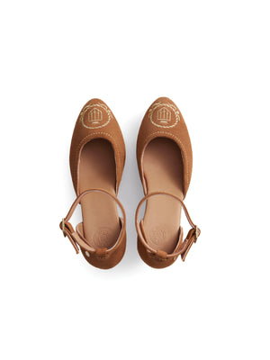Level up your warm weather line-ups with the Richmond. This wonderful wedge has all the ingredients you need for a summer’s day in Savannah or Siena: the espadrille heel, the elegant ankle strap, the stunning suede embellished with gorgeous embroidery. Pair it with a floaty frock or denim shorts and turn heads from sunrise to sundown.