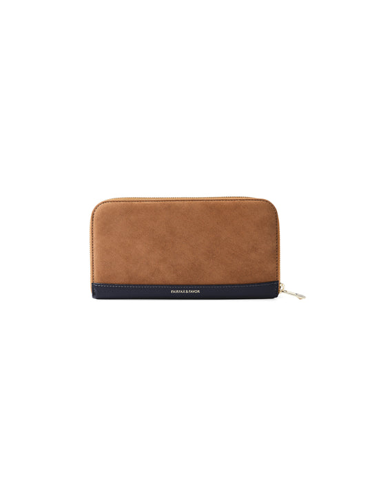 Individually handmade in Europe from sustainably-sourced leather and suede, we’ve given it a full zip closure to keep cash and cards safe, an inner zipped compartment for organisation and a soft microfibre lining. While a branded zip pull and shield hardware in gold and navy enamel adds the Fairfax & Favor look you love.