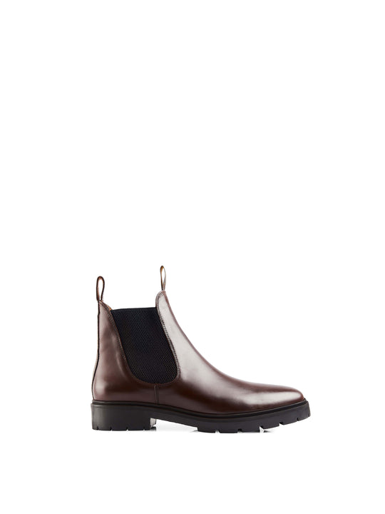 The Trafalgar is a classic Dealer Boot style. Combining elasticated panels in our signature Navy Blue, a rendered-rubber commando sole, carefully cushioned to provide supreme comfort. Made with a water-resistant, breathable membrane, this boot is the perfect companion come rain, hail, snow or sunshine and happy when trudging endless miles through the countryside.