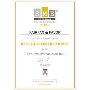 Fairfax & Favor are shortlisted in the SME Business Awards for Best Customer Service. The award recognises those that exceed customers expectations before, during and after any sale, building long-term customer relationships and providing a service that is consistently outstanding.