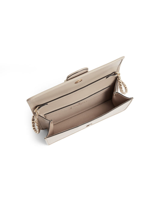 Sleek and understated, the Belmont Clutch Bag is a design that exudes elegance. LIke other members of the Belmont family, it features our statement cutout chevron buckle in shiny light gold – plus piping detail and a classic chain handle - all in a compact clutch bag shape.