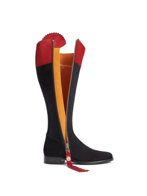 Making its debut at Burghley Horse Trials, this trot-up perfect British Equestrian edition of our much-loved Regina is made for three-day events and horse shows. Our iconic Regina needs no introduction, but here it is as you’ve not seen it before – in navy topped with red to celebrate the British Equestrian team. Available in three fits and two heel heights, their bright red tops and tassels bring a flourish of colour to jods, skinnies and minis alike.