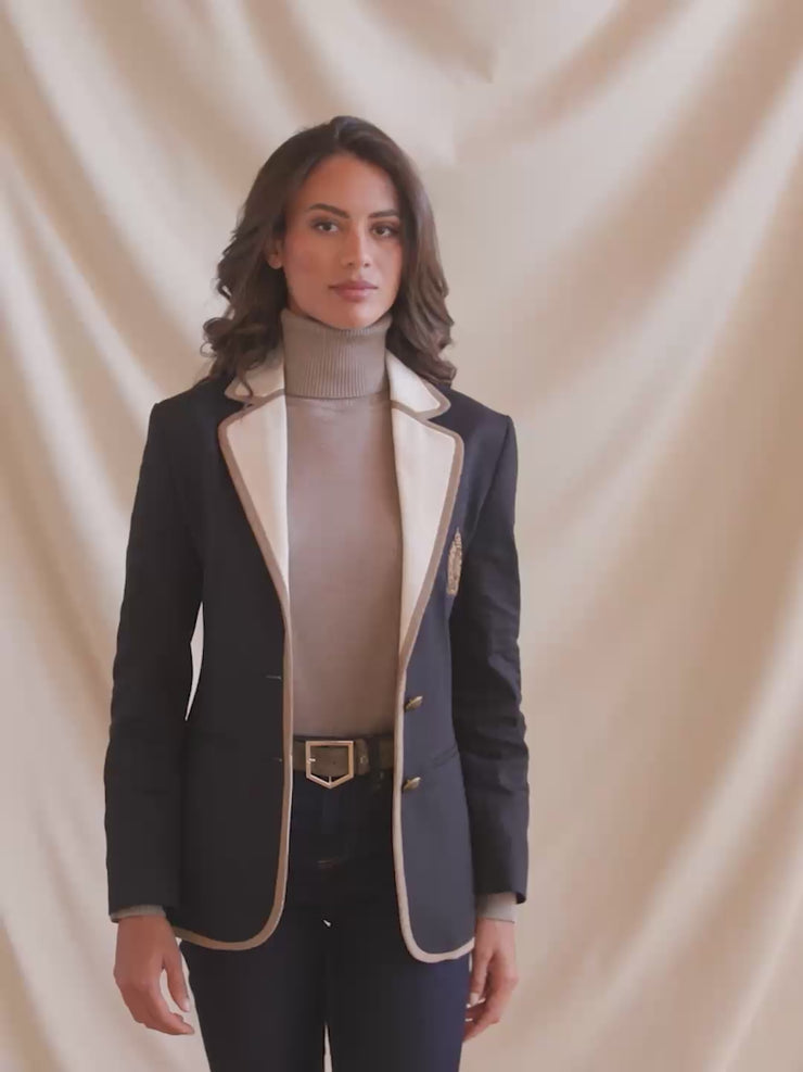 A fresh take on our much-loved Beatrice, the Bryony Blazer is a shapely fitted jacket with no shortage of tailored touches. In a bold tri-colour combination with a rounded collar for a feminine look, clean welted pockets and a soft corduroy trim for dressed up or down versatility.