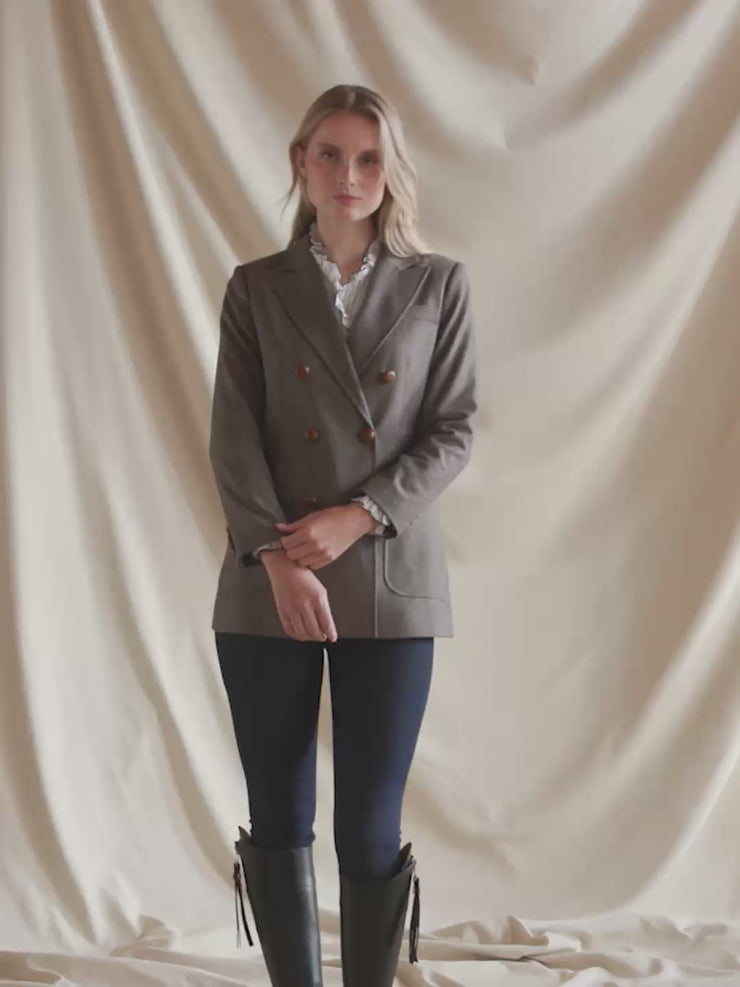 Cleanly tailored from our wool rich fabric in a muted tone of chocolate, the Clara Blazer is the epitome of classic rural vogue. Double breasted for elegance and flattery, in a relaxed fit that’s perfect for layering, it’s finished with woven-style chestnut leather buttons on the front and cuffs for enduring country style.