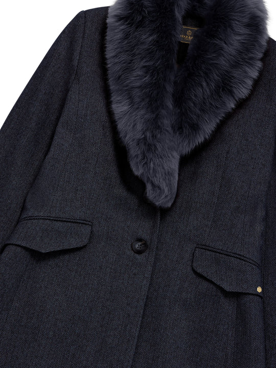 Harriet - Navy Herringbone Women's Coat - Navy Herringbone Wool Mix