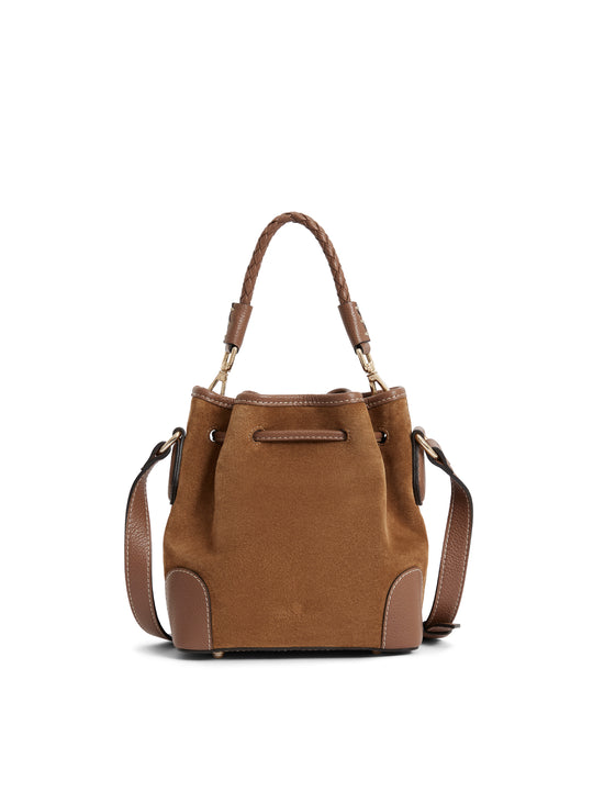 A smaller scale version of our first ever bucket bag, the Mini Bibury is soft, slouchy and stylish. Crafted from supple suede it features a braided detatchable leather handle and crossbody strap, so you can choose how to wear it. Finished with a leather pull cord with tassel trim – a new twist on our iconic styling detail.