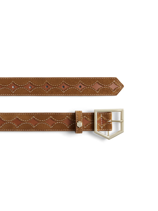 Complete your casual outfits in style with the western-inspired Ohio Belt. Beautifully detailed, with diamond cutouts and contrast stitching plus our iconic shiny light gold chevron buckle, get ready for a signature Fairfax & Favor look.