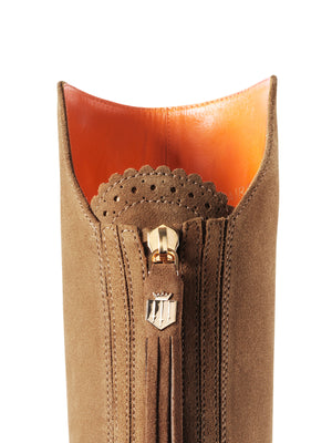 A boot that blends timeless elegance with on-trend detail, the Heeled Amira has a contemporary over the knee silhouette for statement style and a 7cm block heel for all day comfort. The ankle zip and full length back zip makes them easy to get on and off, while the interchangeable tassel and scalloped fan ensure they have that iconic Fairfax & Favor look.