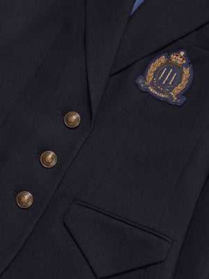 Sharply tailored, our original blazer is a staple for modern wardrobes. Dressed up or down to suit the occasion, all the signature details are there – including an intricate zardozi embroidered heritage logo, antique brass buttons and chevron pocket flaps.