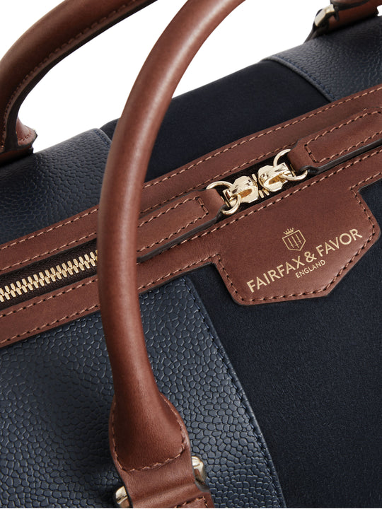 Featuring understated gold foiled branding and all the design details you expect from Fairfax & Favor. Like two carry handles and a canvas and leather shoulder strap, double zips, internal zipped and poppered pockets, gold studded base, cotton twill lining and an internal D-ring so you won’t misplace your keys.