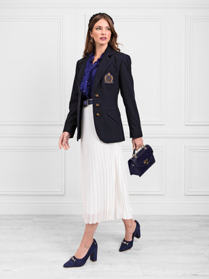 When you’re looking for a shoe that’s the definition of sophistication, the Chantilly Court Shoe is the answer. The elegant pointed toe shape and branded shiny light gold bit hardware are reminiscent of the Epsom, while we’ve given this design a modern 9cm suede-wrapped block heel, so it’s also effortless to walk on.