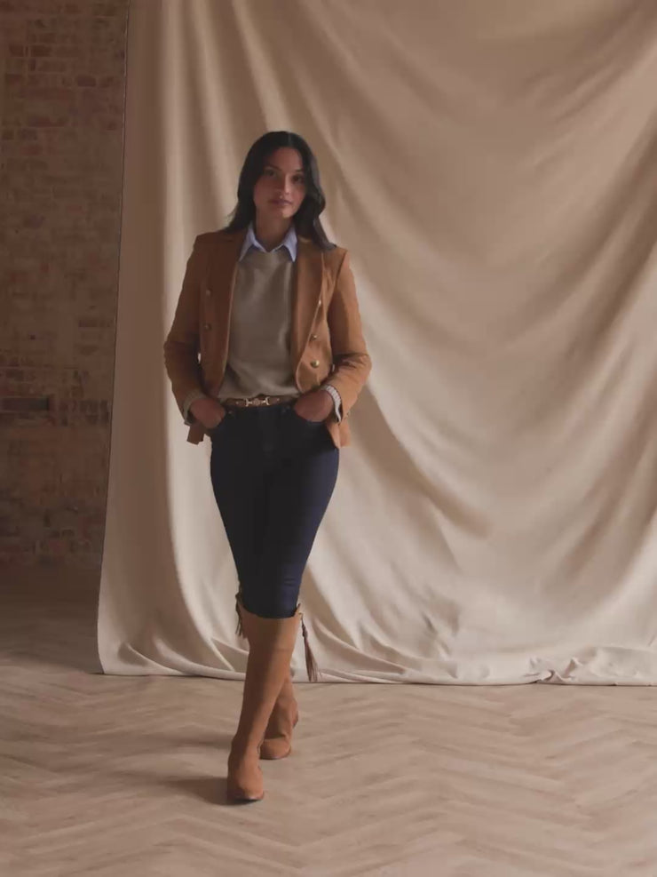 An investment piece for best-dressed wardrobes, the Daphne Suede Blazer in a go-with-anything shade of Tan or versatile Cornflower Blue will take any look to the next level.