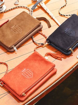 Handcrafted in Europe for a quality finish, in sustainably-sourced materials – soft suede and leather or plush quilted velvet – this bag has a raft of considered details, including a main zipped compartment, inside zipped pocket and secure magnetic closure.