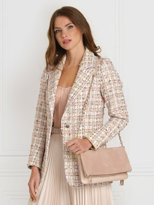 Our update of the original Finsbury in a roomy clutch bag design, finished with the same detachable gold chain and leather strap, our iconic tassel and tonal embroidered logo, so you know it’s Fairfax & Favor. Wear on your shoulder, as a crossbody bag or without the strap as a clutch bag for evenings.
