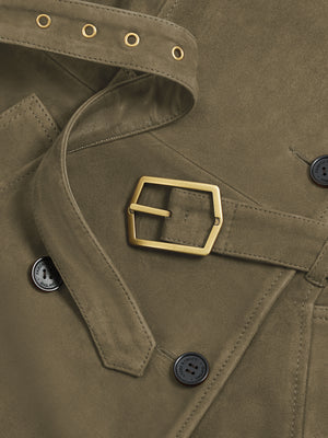 We’ve taken a classic trench and upgraded it in the softest suede. The Frances is a luxe ‘dress up or down’ design that’s versatile and wearable, from everyday to the most special of occasions. Styled with classic details, look out for leather-lined suede epaulettes, a reversible tonal suede and leather belt with antique brass double chevron buckle, and storm flaps on the back and the breast.