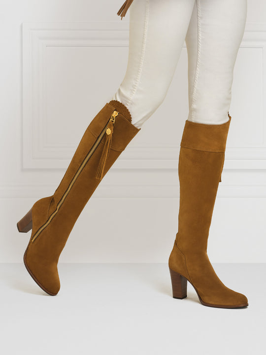 A twist on our signature style, where the Fairfax & Favor story began, Regina is a polished interpretation of a classic with an elegant high heel. A sophisticated knee-high boot, handcrafted individually from premium, sustainably sourced Itailian suedes, is available in a range of timeless shades.