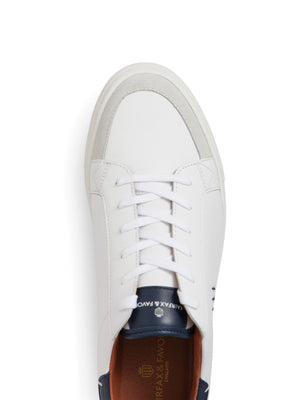 You asked for a men’s trainer – we obliged! The comfiest choice for casual occasions, the Holbourne is crafted from white & navy leather with light grey suede and embroidered with our trademark navy swords. Wear it with your favourite denim for off-duty style and file under ‘year-round essentials’.