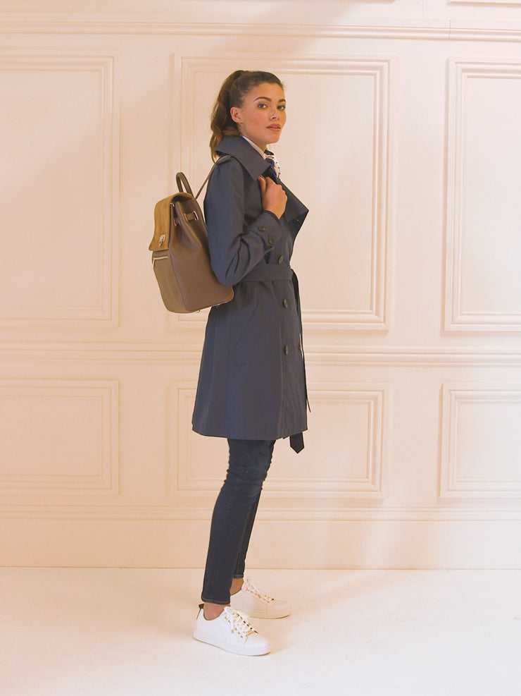 Style up a grey day with the sophisticated Kitty Trench. With its removable epaulettes, chevron pockets and double breasted closure, the Kitty is our answer to the classic cotton trench. This light, unlined coat is perfect for pulling on over a summer ensemble without getting you too warm. Wear it with a crisp white shirt, jeans and loafers on days when the Great British weather isn’t playing ball.