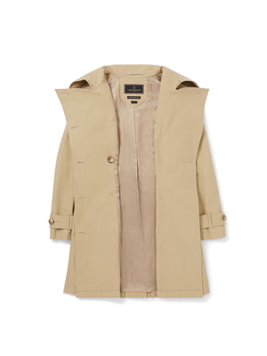 Style up a grey day with the sophisticated Kitty Trench. With its removable epaulettes, chevron pockets and double breasted closure, the Kitty is our answer to the cotton classic trench. This light, unlined coat is perfect for pulling on over a summer ensemble without getting you too warm. Wear it with a crisp white shirt, jeans and loafers on days when the Great British weather isn’t playing ball.