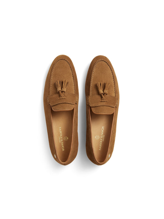 Individually handmade in Portugal from our sustainably sourced suede, craftsmanship includes decorative hand stitching and our hallmark shield hardware – while a padded insole ensures comfort in every step.