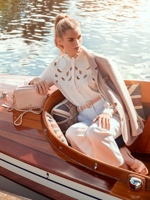 Get your jeans-and-shirt combo perfectly on point with the Portofino. Sporting our iconic chevron buckle, this gorgeous belt is crafted from soft nubuck and finished with contrast ecru stitching. Style it up with white jeans and Amiras, or keep it casual with a floaty frock and Portofino wedges for sultry summer evenings.