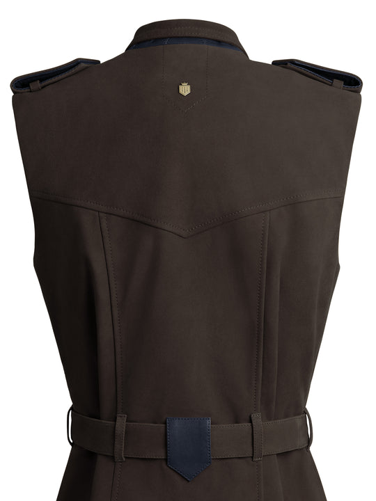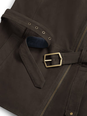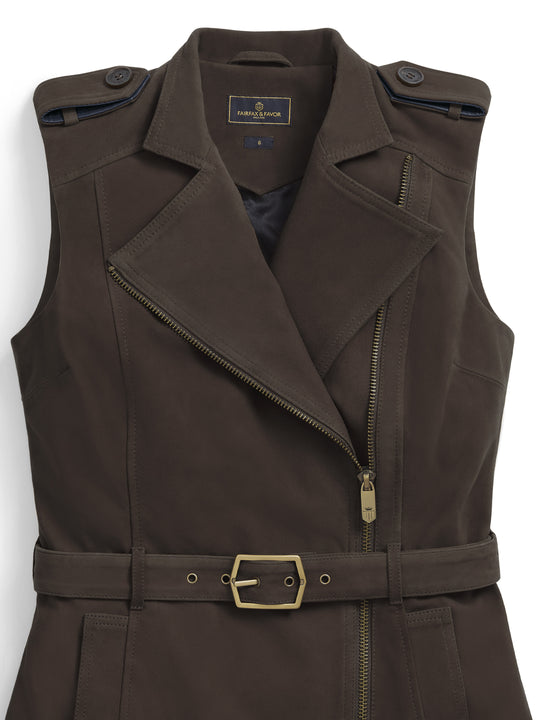 Swing into spring in sophisticated suede. Inspired by our instantly iconic Frances Trench, the Primrose’s allure is all down to the details: leather piping, subtle chevrons, buttoned epaulettes. It’s also incredibly flattering, with elegant feminine tailoring and a beautiful belt to give your waist head-turning definition. A guaranteed confidence-booster, it’s the perfect partner to light knitwear and crisp shirts, smart denim or a cute tweed skirt to elevate your rural vogue ensemble. Just add your favourite Fairfax & Favor boots and bag and you’re all set for spring meets and meet-ups.
