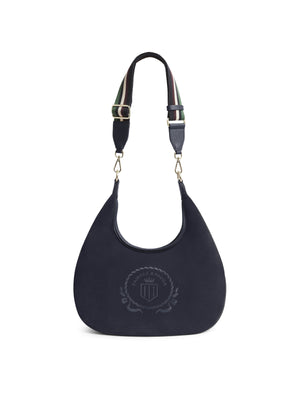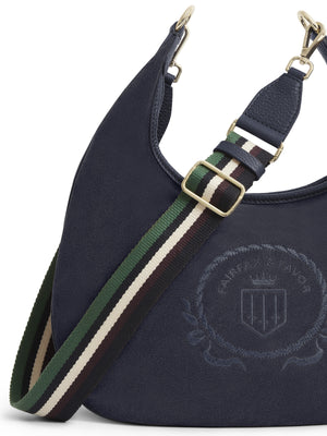 Level up your casual closet with the Richmond Hobo. This slouchy everyday essential has loads of room for all your stuff, with a big zip along the top to keep it all safe and sound. The adjustable green, navy, cream and plum webbing strap brings a pop of color to this suede sensation, with a stylish new incarnation of our logo adding the finishing touch across the front. Style your Richmond Hobo with jeans and a gilet or a floaty dress and ankle boots for relaxed weekends in town or country.