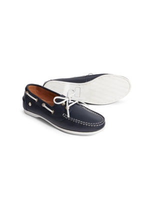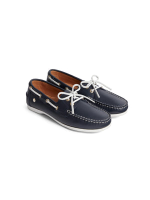 Seaside style, sorted. Paying tribute to our favourite slice of Devon heaven, the Salcombe is the deck shoe every girl needs for laidback beachside BBQs and parties in the park. Now available in nautical navy blue leather as well as our classic nubuck, it pairs perfectly with a crumpled linen shirt and shorts for shipshape summer style – no boating experience necessary!