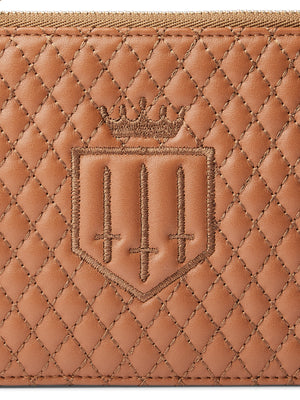 Individually handmade in Europe from sustainably-sourced smooth leather with a silhouette shield logo on the front and gold embossed logo on the reverse. A top zip with branded zip pull, chevron card slots and a durable microfibre lining complete the design.