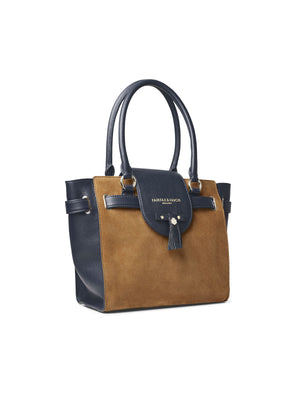 Part of our iconic Windsor family, this tote bag will quickly become your go-to for every day - thanks to the timeless styling and the mid-sized handbag shape, that offers enough space for your essentials. Complete with all the Fairfax & Favor design features you love, including the removable tassel, shiny light gold chevron buckles and gold foil branded logo. Individually handcrafted in Europe, in an elegant mix of soft suede and pebbled leather, details include rolled drop-down leather handles, a removable shoulder strap, belted sides to give you more space when you need it and a full zip to the main compartment for security. A microfibre lining, internal zipped pocket, phone pocket and gold studded base complete the appeal.