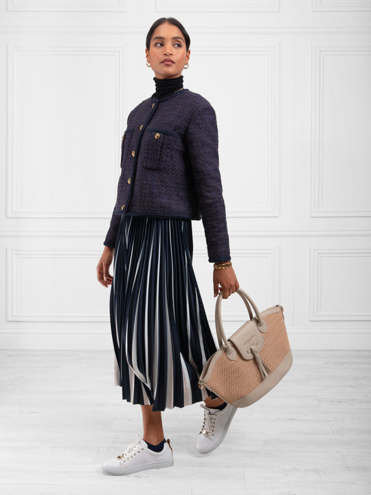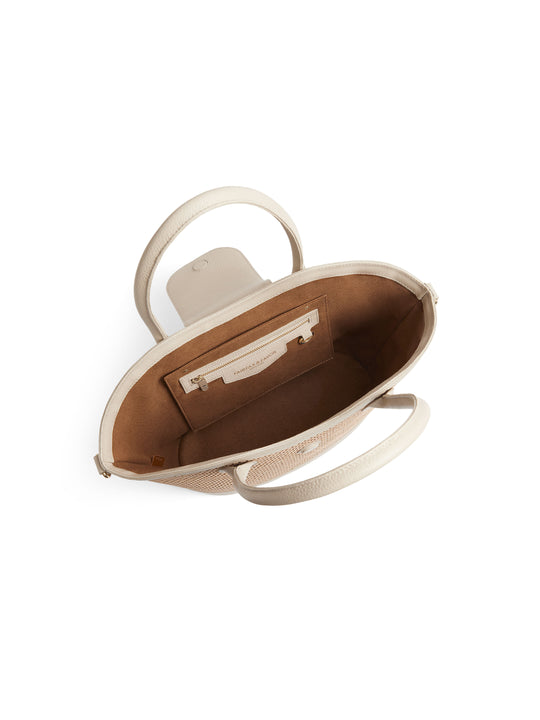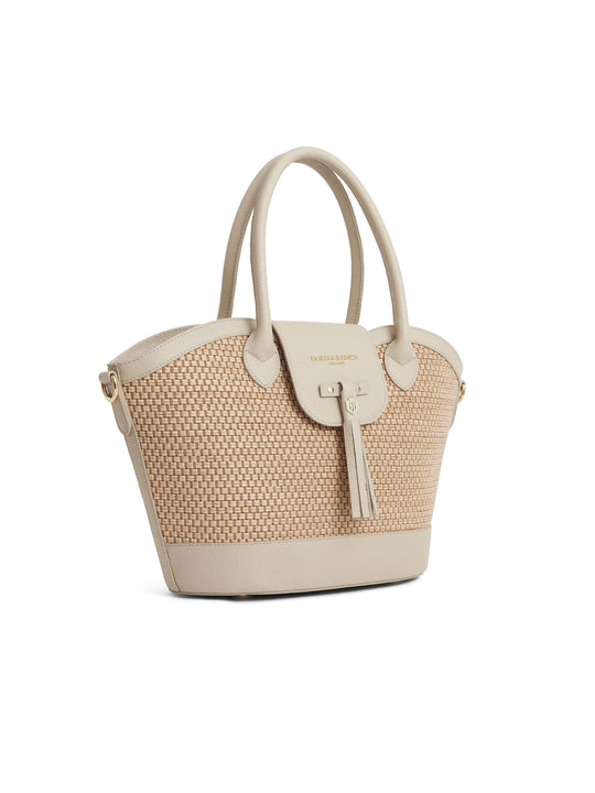 Our ever-popular icon has been given a fresh summery look. The Windsor Basket Bag delivers all the same design details, including a detachable shoulder strap so you have a choice of wearing it over your arm or on your shoulder – in an on-trend basket shape with a woven finish and a refined leather trim.